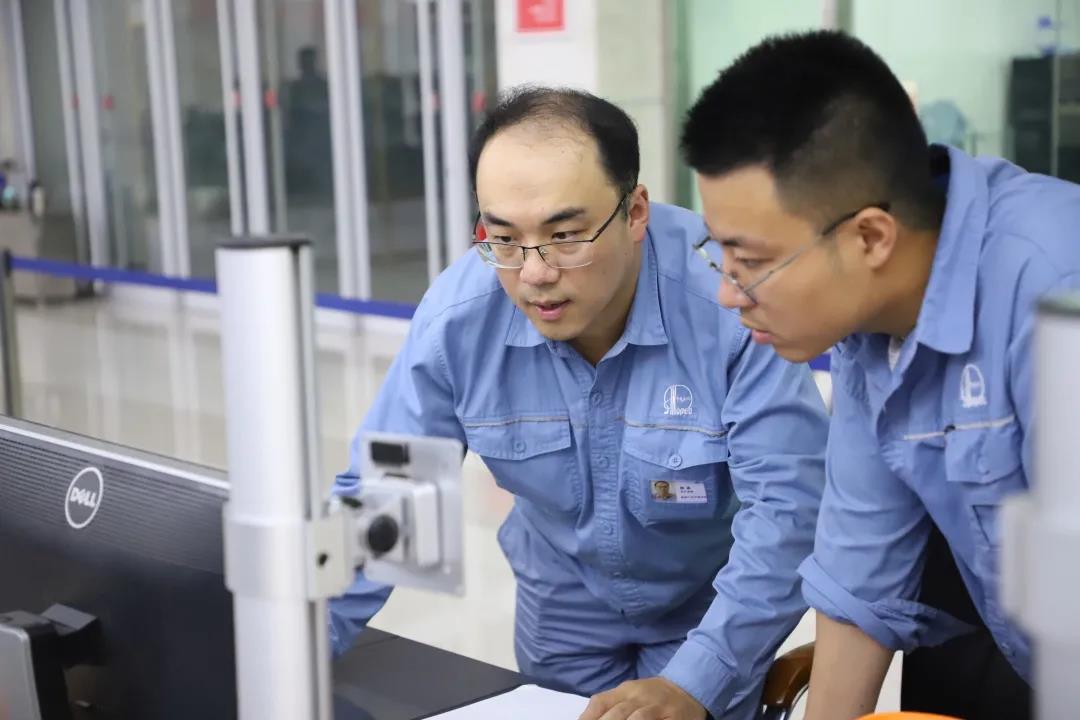 ▲ 張紹光在檢修現(xiàn)場(chǎng)(右)