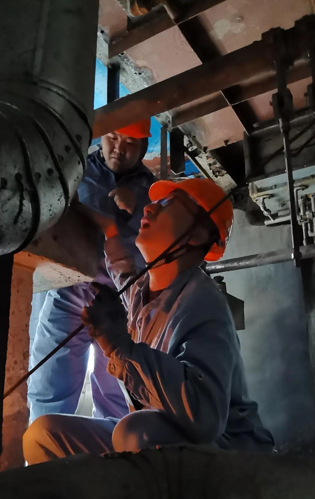 ▲ 王玉亮在檢修現(xiàn)場(chǎng)(左)