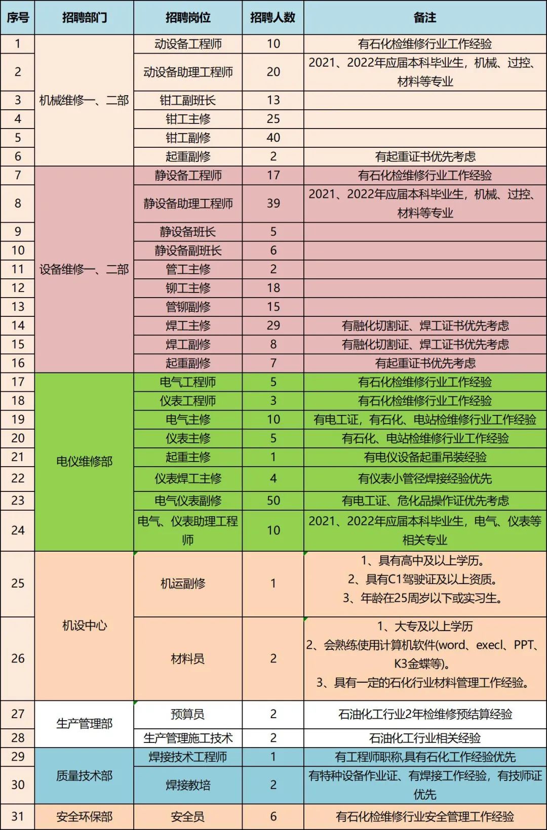 1、愿意從事石油化工建筑安裝、檢維修行業(yè)工作,具有良好的溝通能力和奉獻(xiàn)吃苦精神,學(xué)習(xí)能力強,服從組織分配,愿為公司生產(chǎn)經(jīng)營建設(shè)服務(wù)