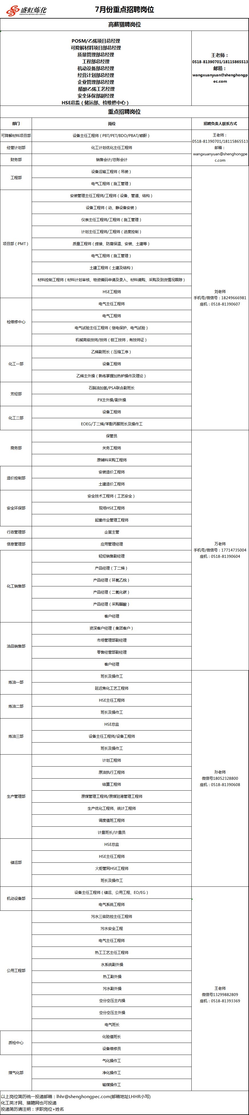 盛虹石化、盛虹煉化、斯爾邦石化、港虹石化7月招聘崗位!