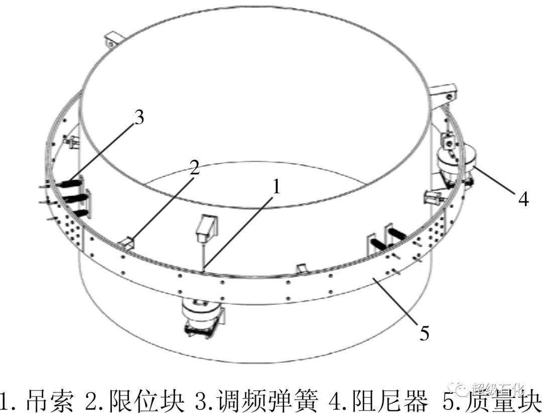 調質阻尼器根據剛度調頻方式的不同,可分為彈簧支承式和單擺懸掛式兩類,彈簧支承式調質阻尼器主要靠彈簧提供恢復力,通過調節彈簧的數量來調整阻尼器自身的頻率,結構簡圖見圖1。本文主要介紹彈簧支撐式調質阻尼器實際應用。