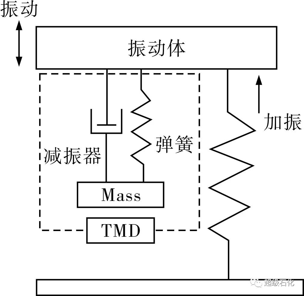 調質阻尼器系統主要由質量塊、調頻彈簧和阻尼元件組成,它將阻尼器系統自身的振動頻率調整到結構振動的主要頻率附近,當外力(風、地震)使得結構物的主振頻率被激發時,阻尼器會產生與主結構反向共振的行為,此時作用在主結構上的能量會被調質阻尼器部分耗散掉,使輸入到主結構中的能量減少,從而起到減小主結構動力響應的作用。